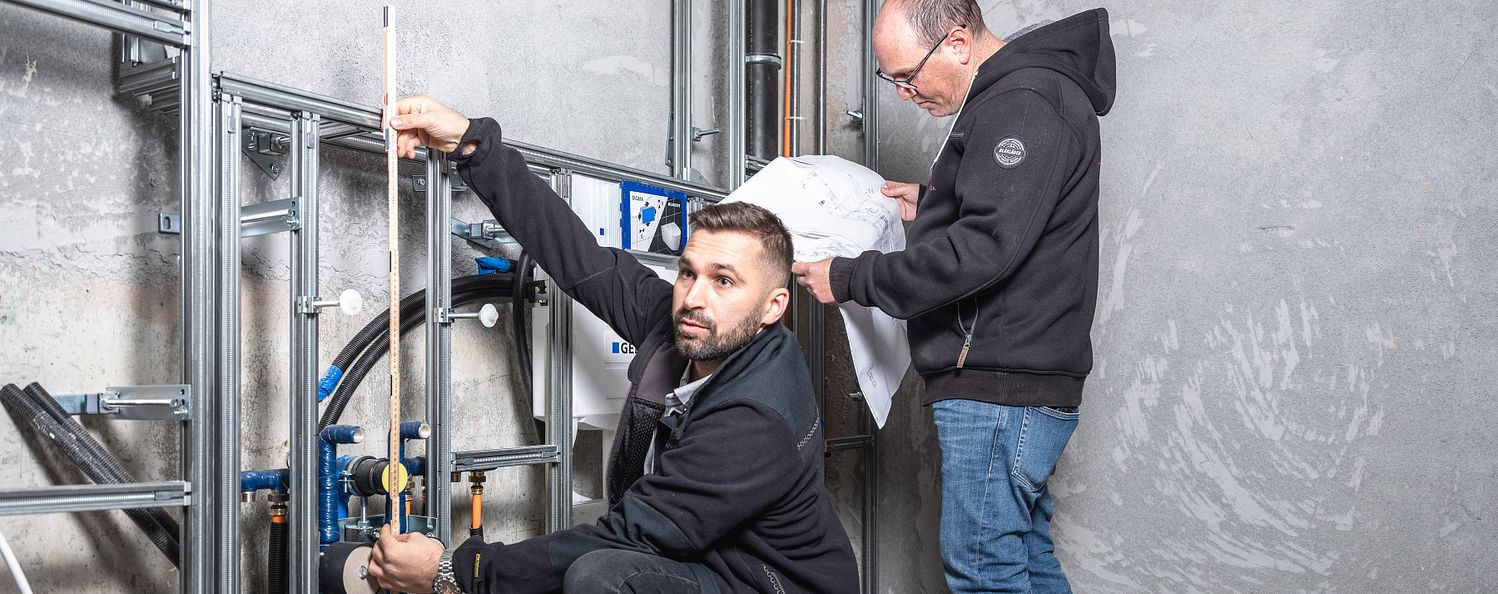 Après la planification, nos installateurs sanitaires posent les conduites d’eaux usées et les raccordent à la canalisation locale. C’est la base d’un système de technique sanitaire qui fonctionne. Ensuite, nous posons un système complexe de conduites d’eau potable dans tout le bâtiment. Toutes les robinetteries et tous les appareils sont montés et mis en service avant la remise de l’objet. L’eau étant une denrée alimentaire précieuse, notre travail est soumis à des directives et normes particulièrement strictes.